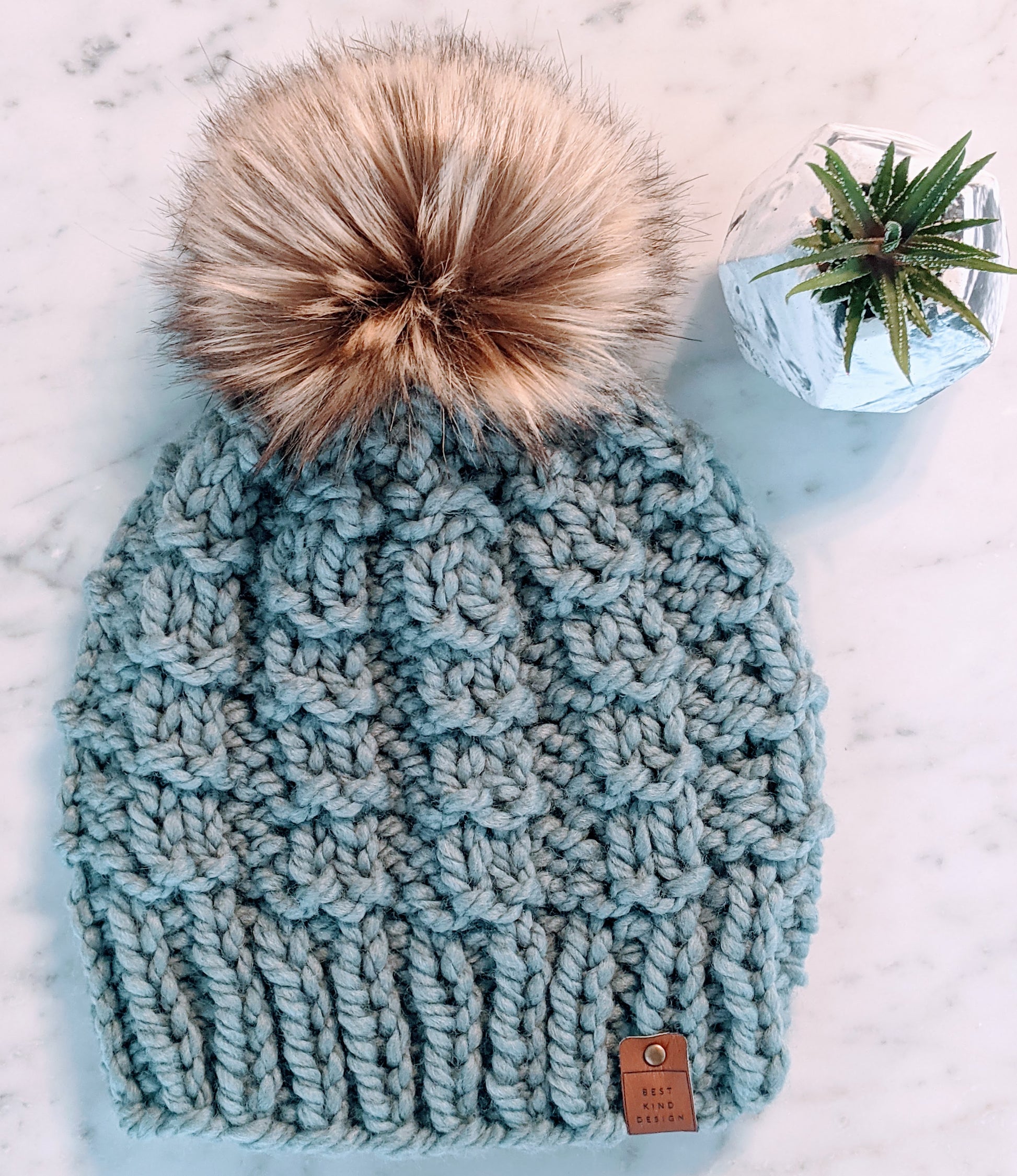 Remove faux fur pom pom before washing (no not submerge). Handwash in cold water. Lay flat to dry.