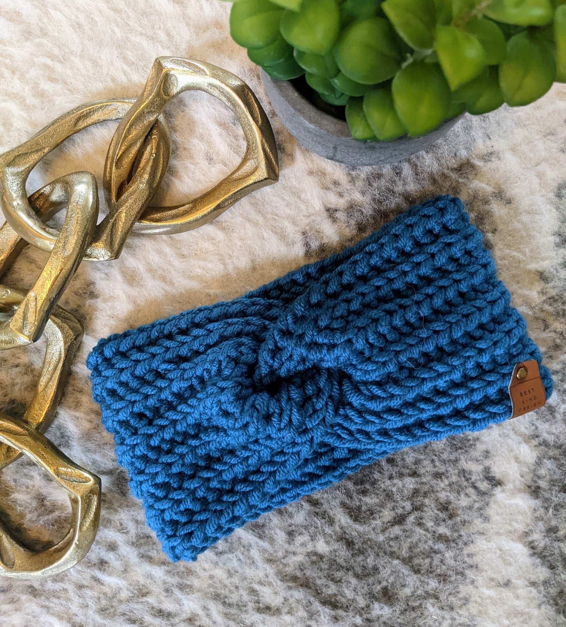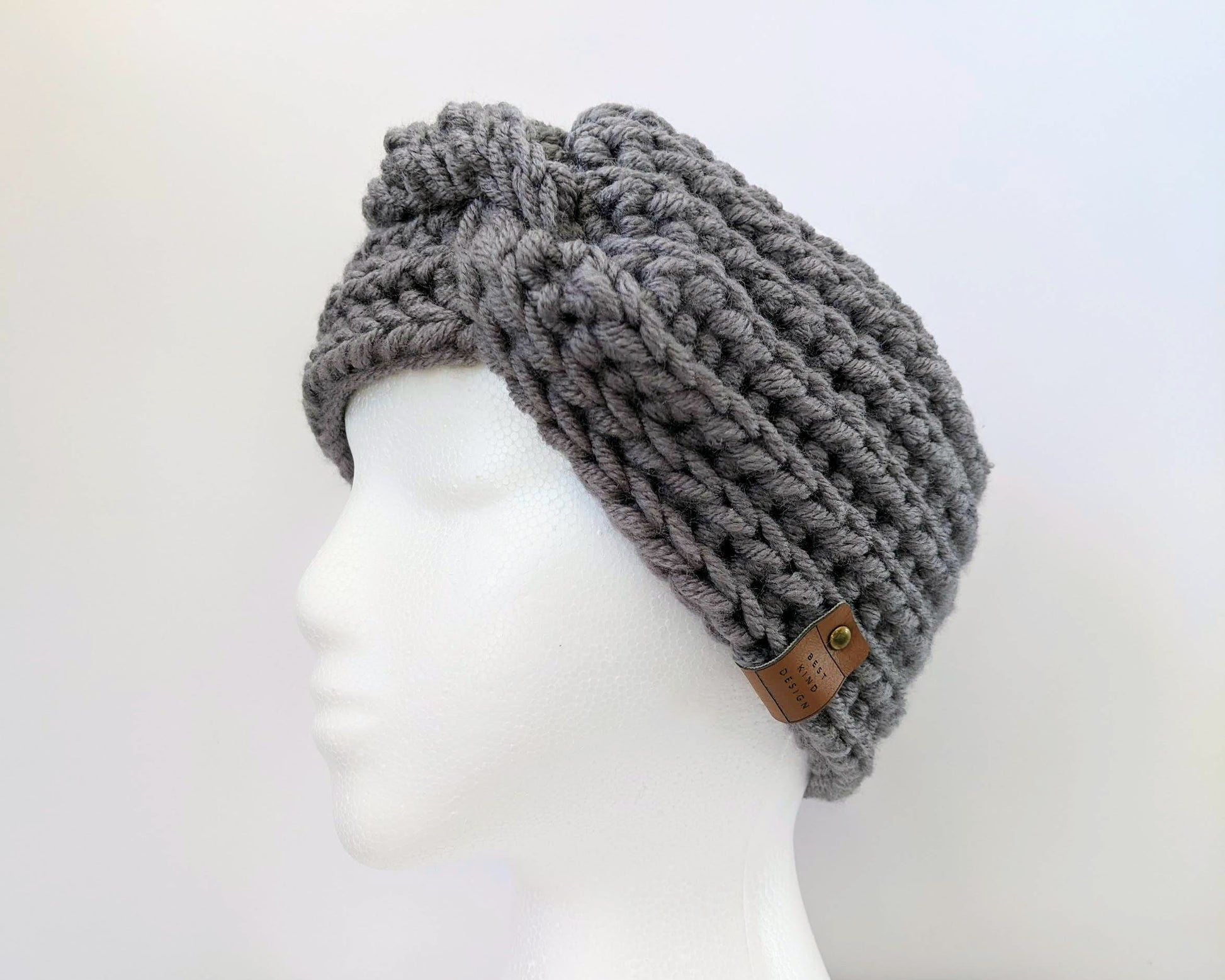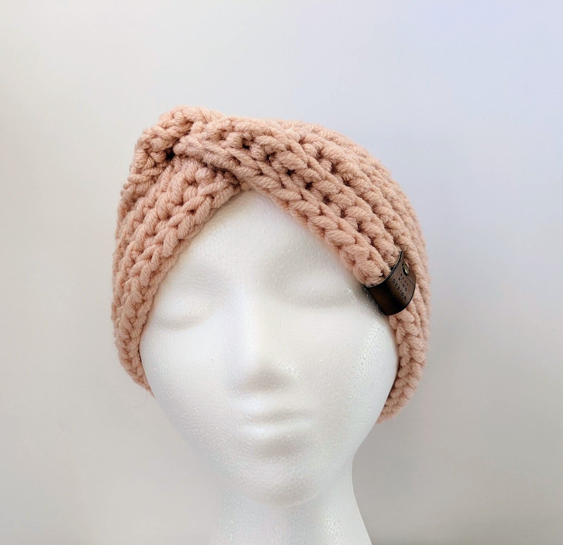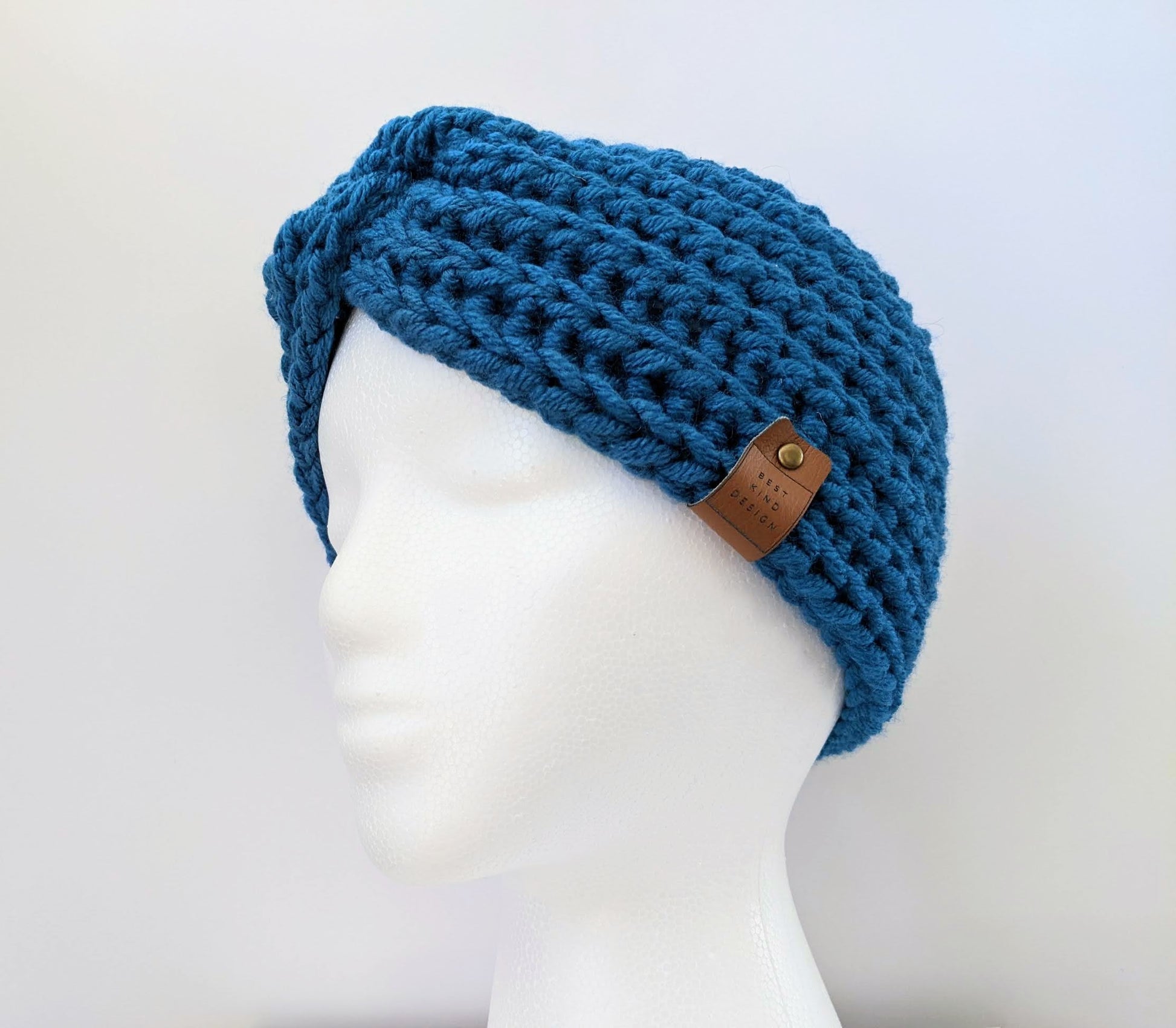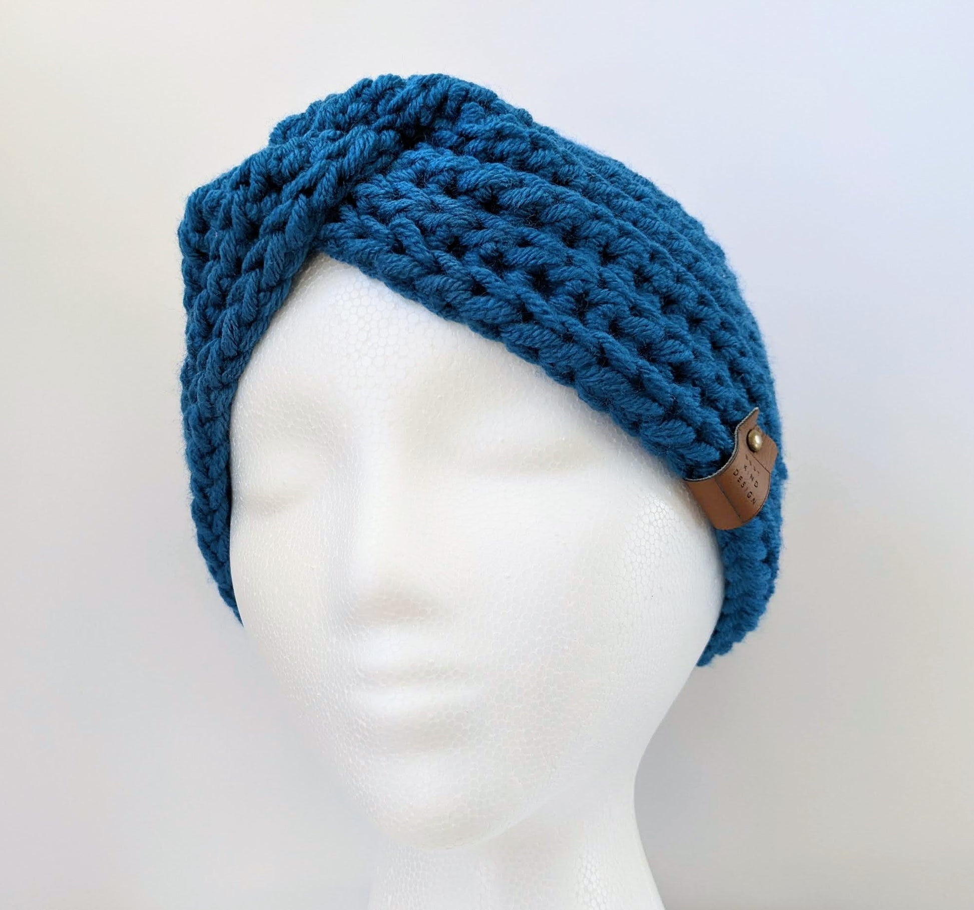 Make a fashionable splash in the colder months with this hand crocheted modern chunky headband. Gorgeous teen/adult winter ear warmer with faux leather detachable tag. This headband is warm and extra wide for coverage on those cold days, and is offered in a variety of colours.