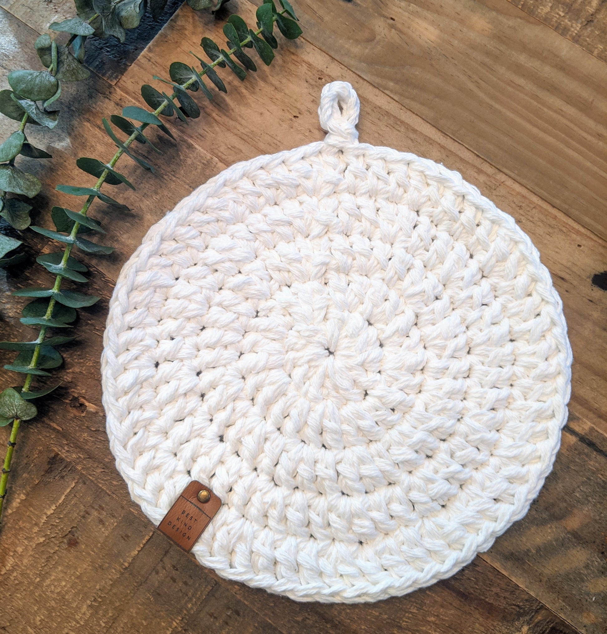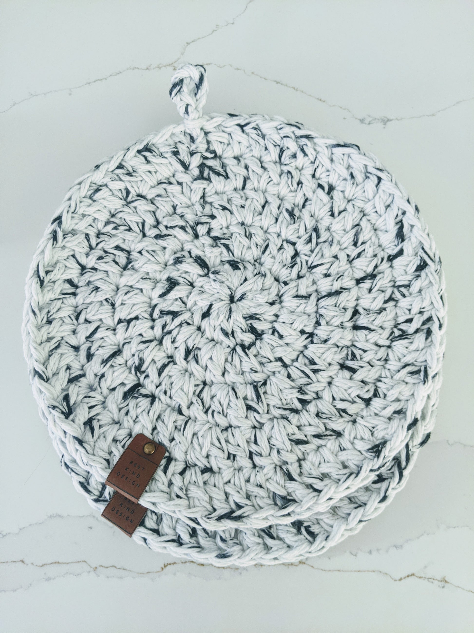 Protect your counters and add beauty to your kitchen or dining table with these stunning textured circular trivets. Use as a counter or dining table accessory, for hot pots or casserole dishes, for teapots, or for plants. Each trivet comes with a loop for easy hanging when not in use.