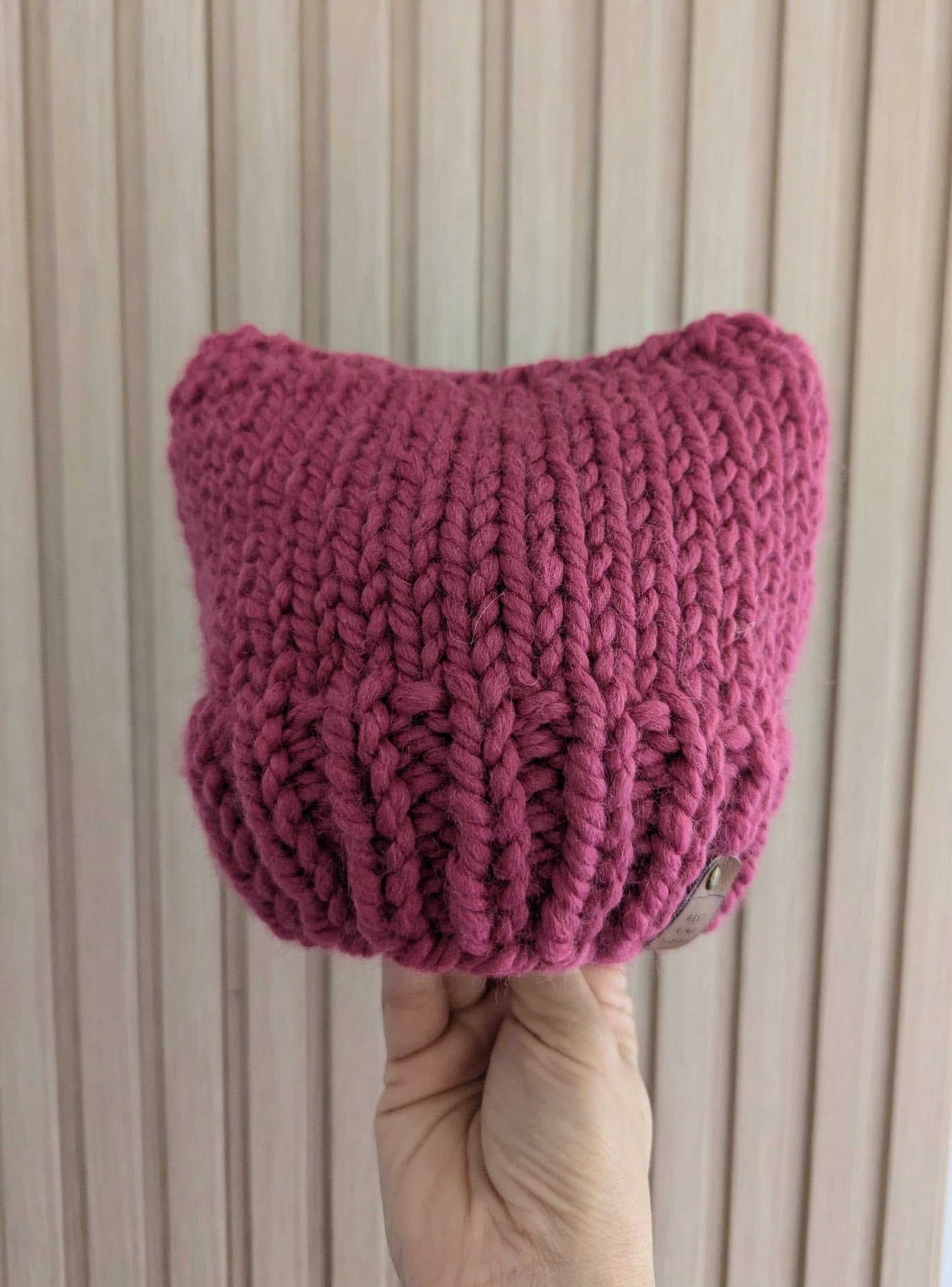 MEOW! Flaunt your feline love with this "Kitty" Ear beanie! Your little one will be stepping out in style when they wear their hand knit hat!