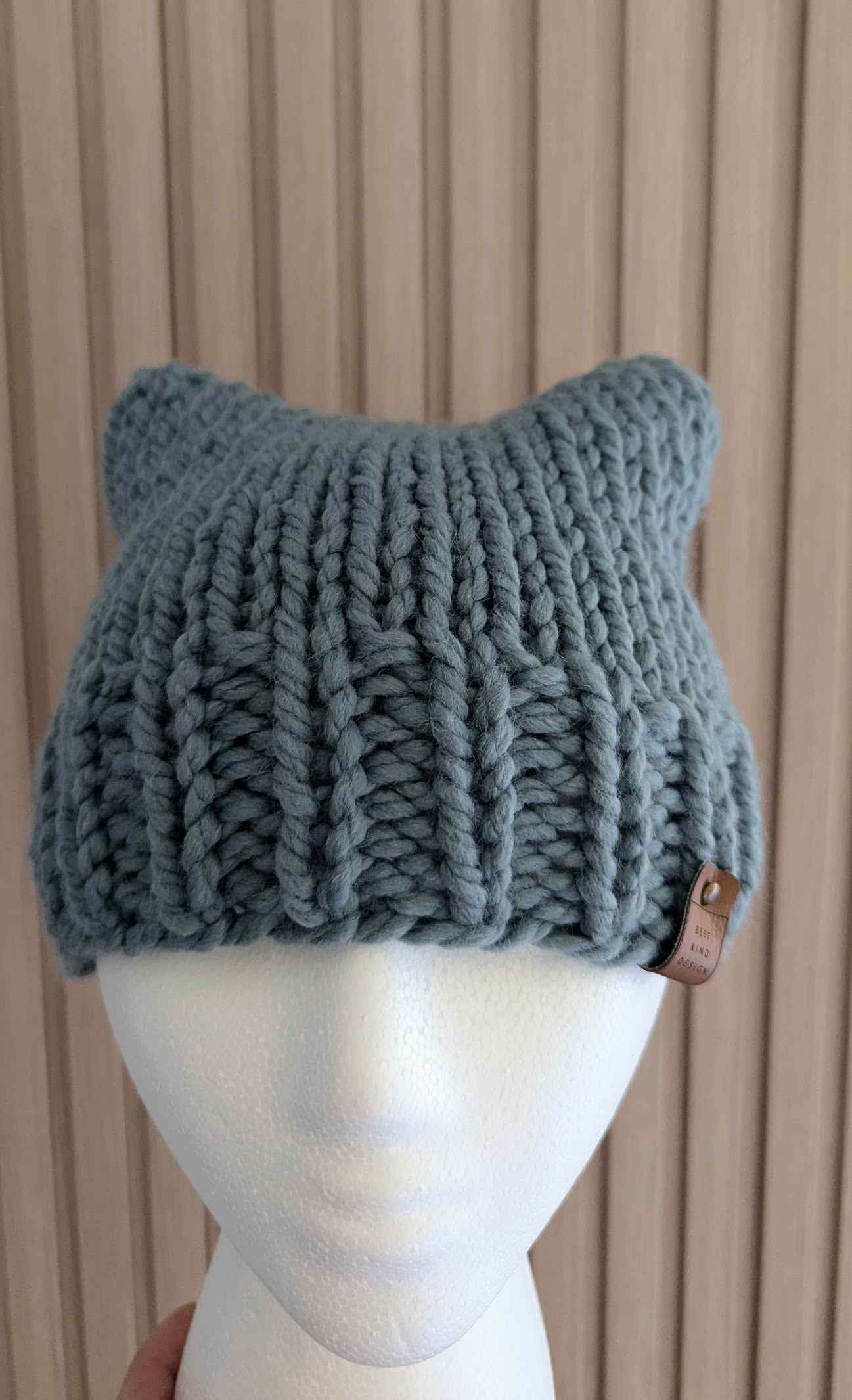 MEOW! Flaunt your feline love with this "Kitty" Ear beanie! Your little one will be stepping out in style when they wear their hand knit hat!