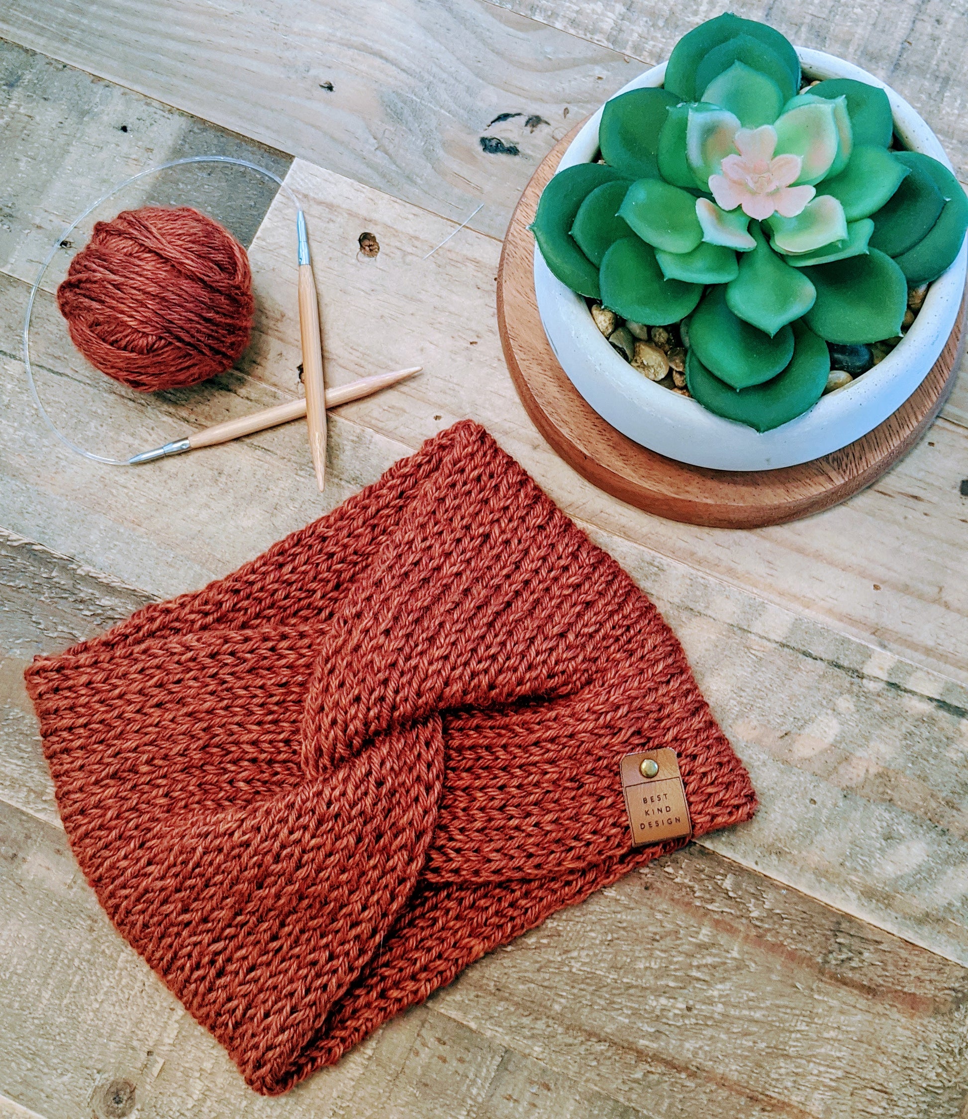 Hand knit modern twist ear warmer headband. Perfect for fall, winter or transitional days. Wide width for extra warmth, coverage and style factor.