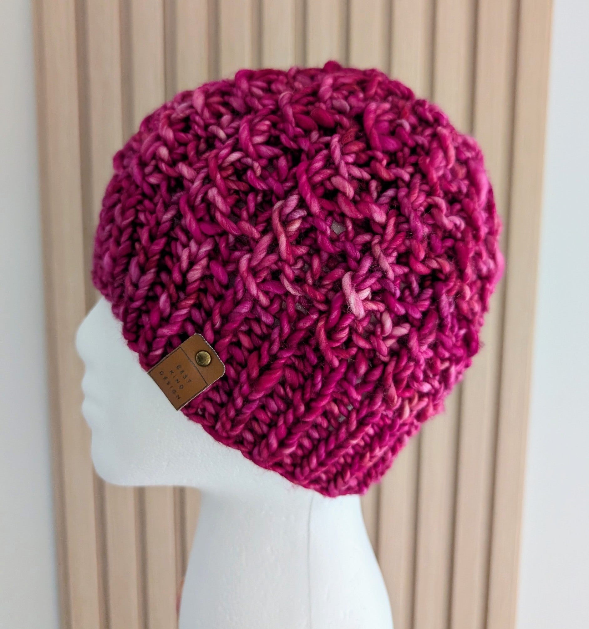 Step out in style with this beautiful 'Tides Light' Winter Hat. This beautiful winter beanie is hand knit in a luxury merino wool, and is designed to fit an average size teen or adult. It is hand knit in a striking fuchsia yarn, and features a lighter weight wool perfect for those transitional months.