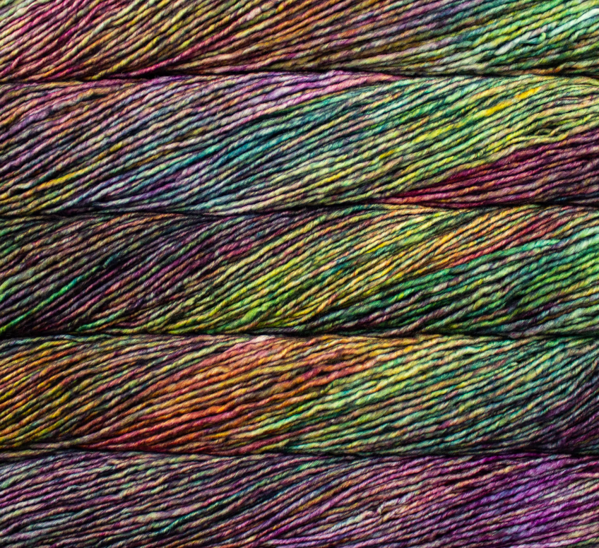 Mecha is a rare Superwash single ply yarn! Mecha is a soft merino yarn that offers vivid, multi-layered colours, and offers a slight thick and thin texture. Use Mecha for accessories, garments, cables and more!