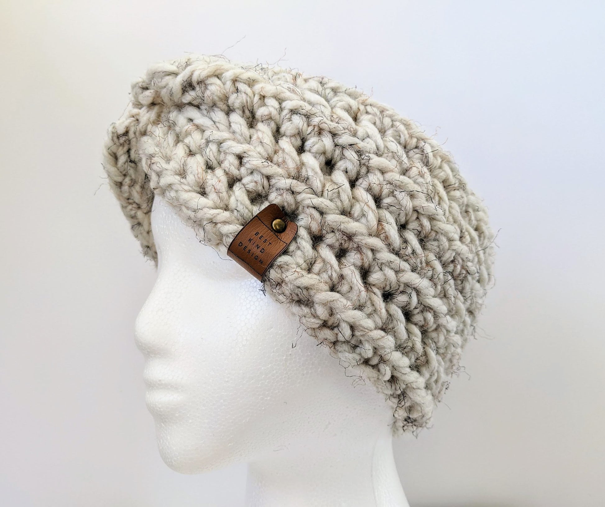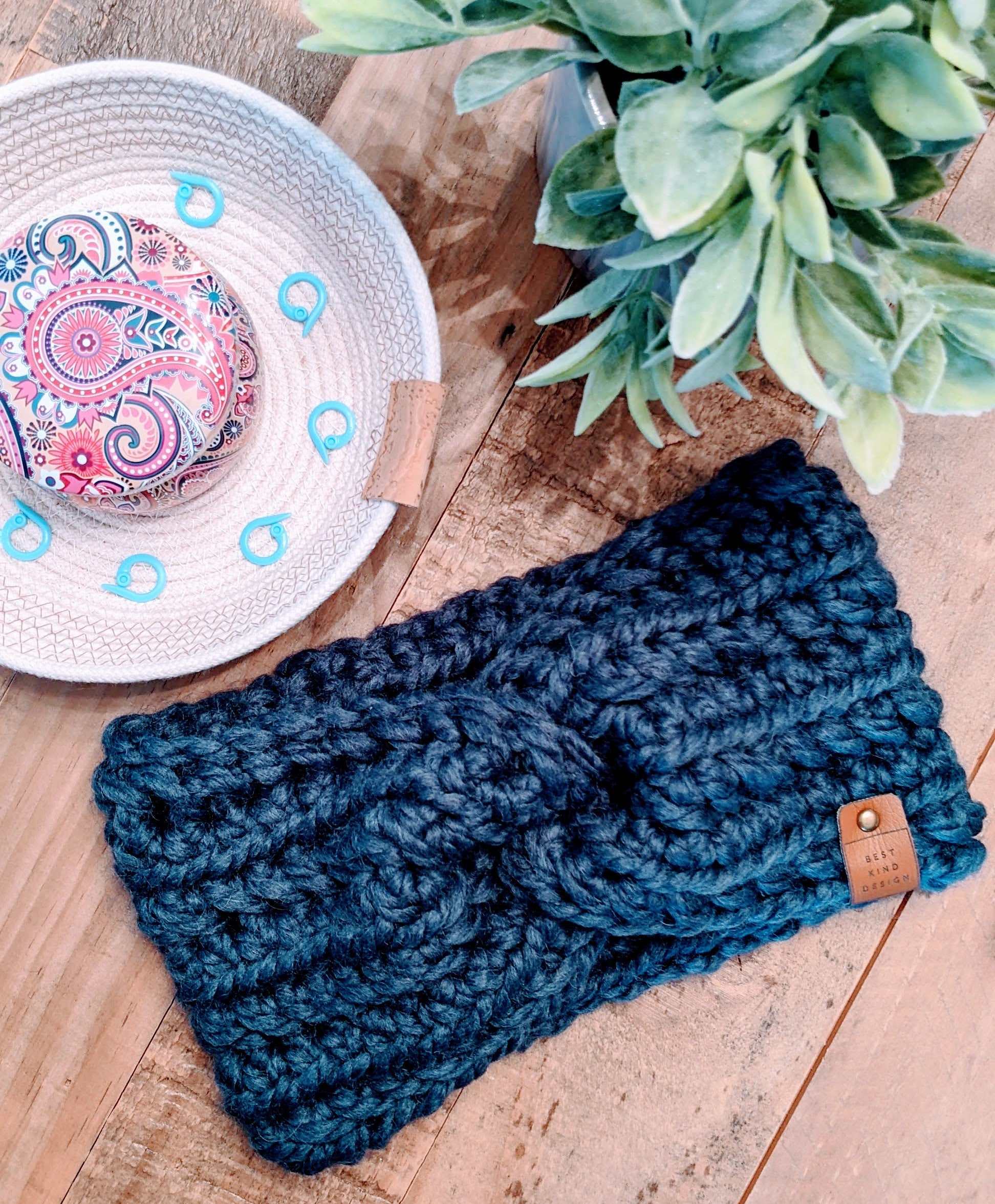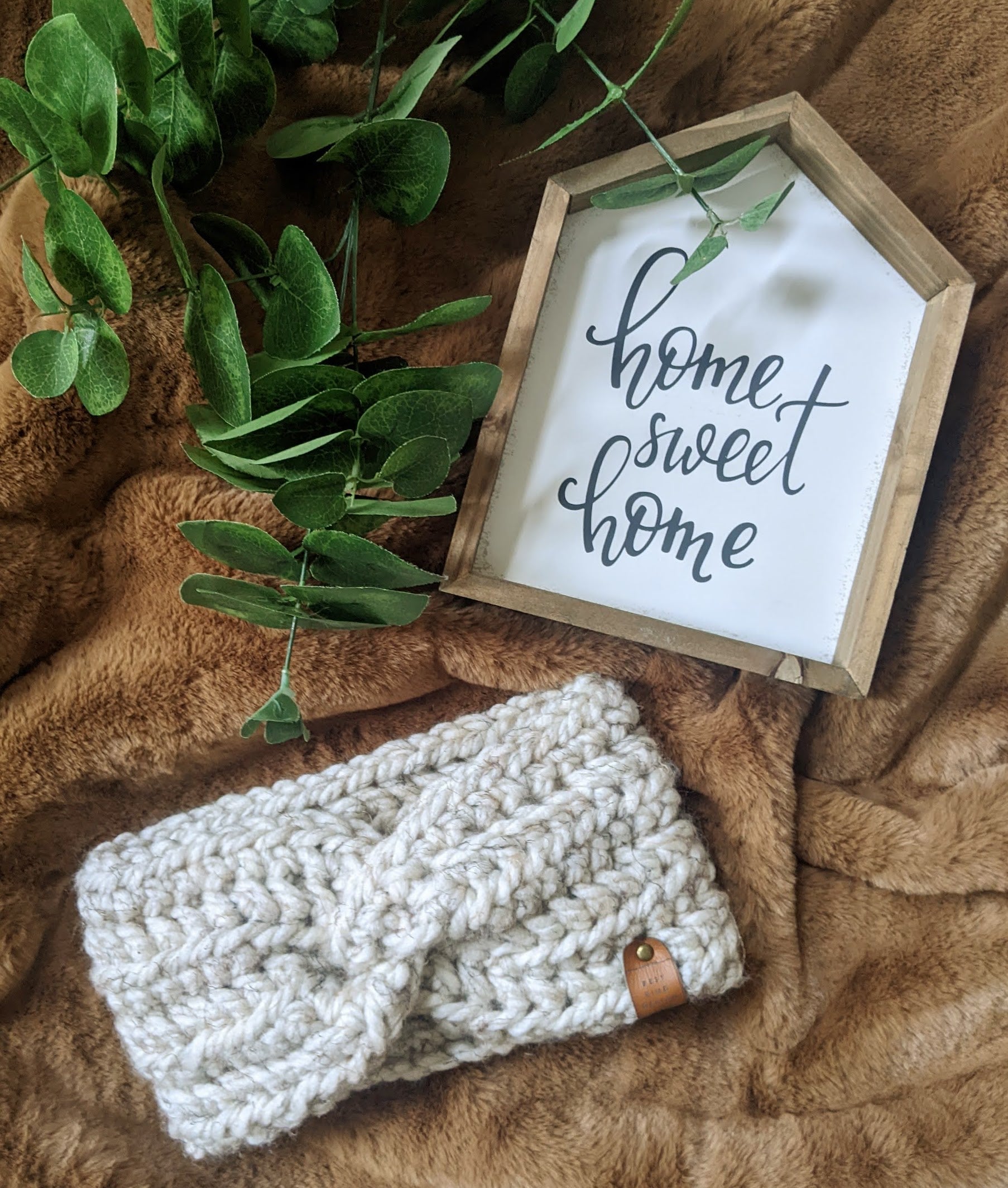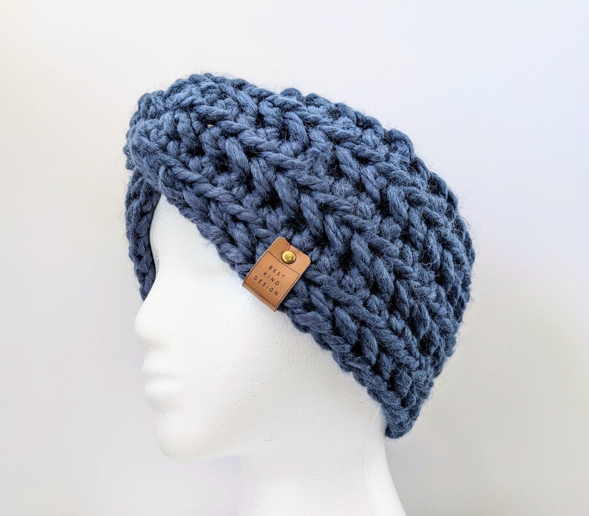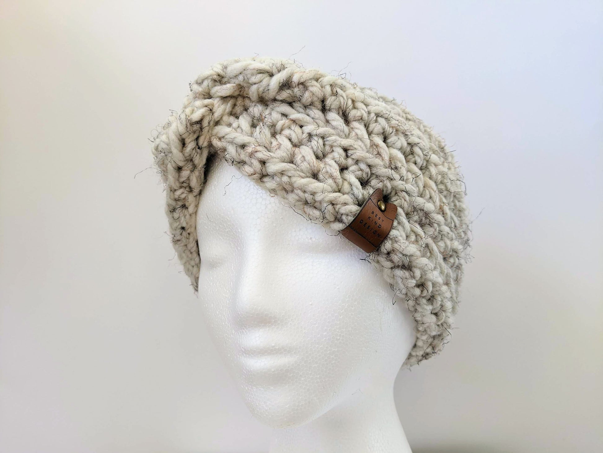 Looking for a super warm headband to battle those winter months in style? The Roxanne hand-crocheted modern chunky headband is the perfect choice! Gorgeous teen/adult winter ear warmer with faux leather detachable tag. This headband is warm and extra wide for coverage on those cold days. Choose between a neutral oatmeal tone, or a beautiful indigo denim blue colour.