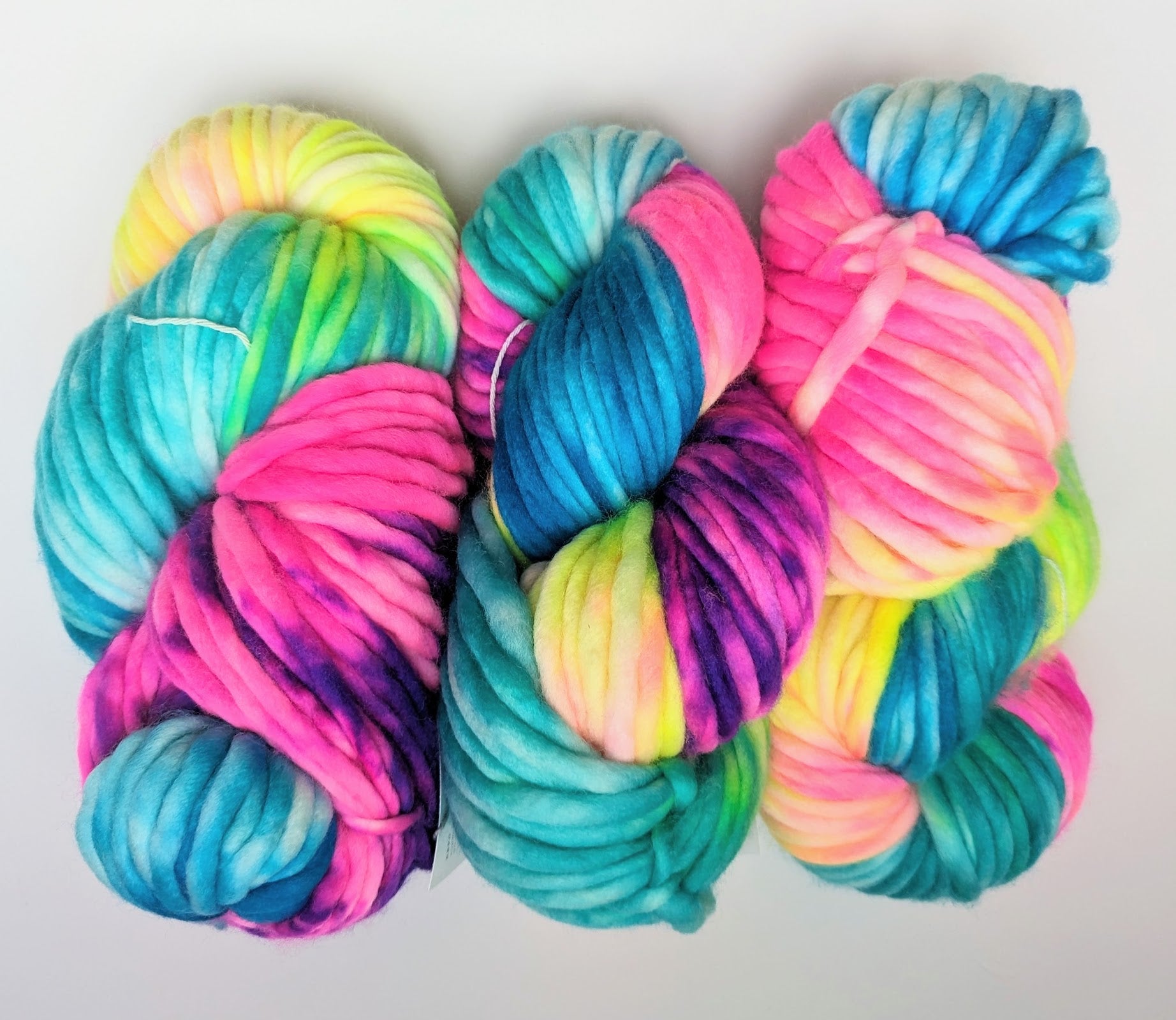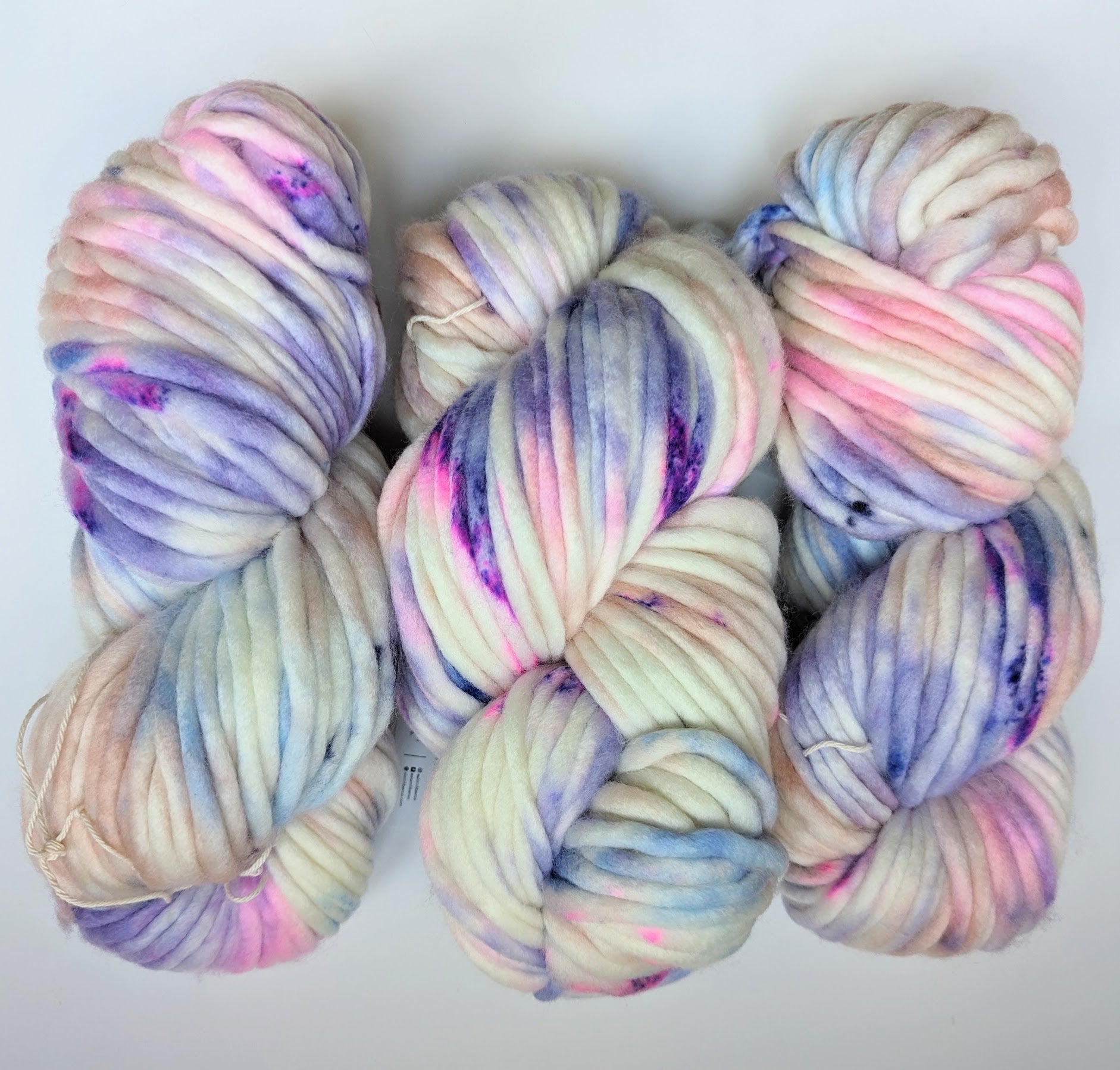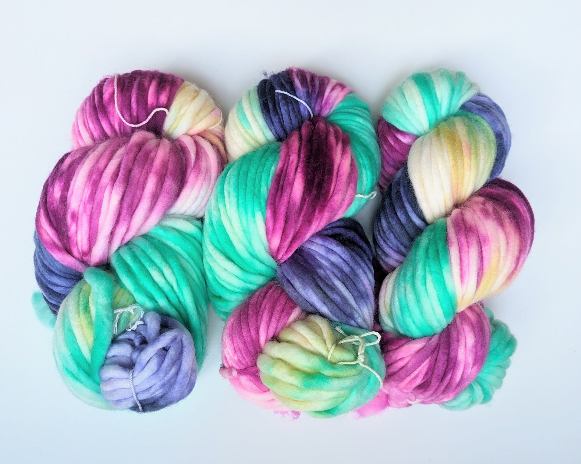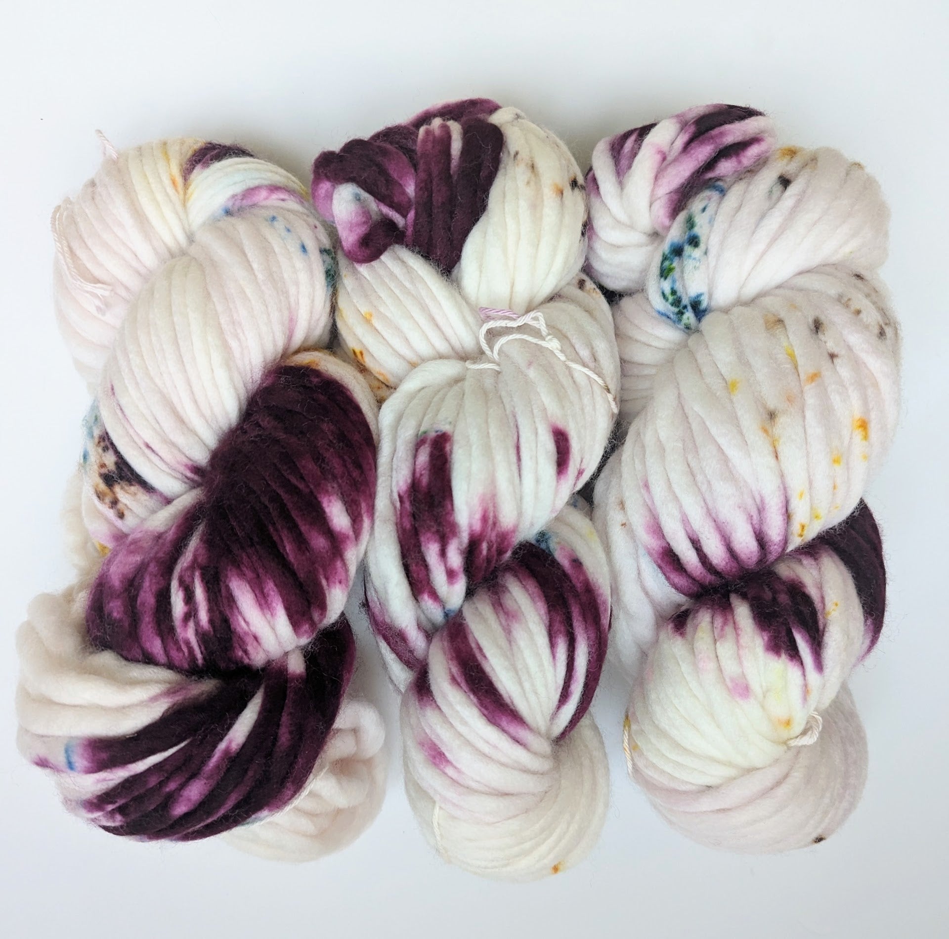 SLAM Fiber Co. Plush is a Super Bulky yarn, hand dyed in Canada by Sam. It's perfect for beanies, scarves, sweaters, and more! This new version of Sam's Super Bulky yarn is even bigger and squishier than before!