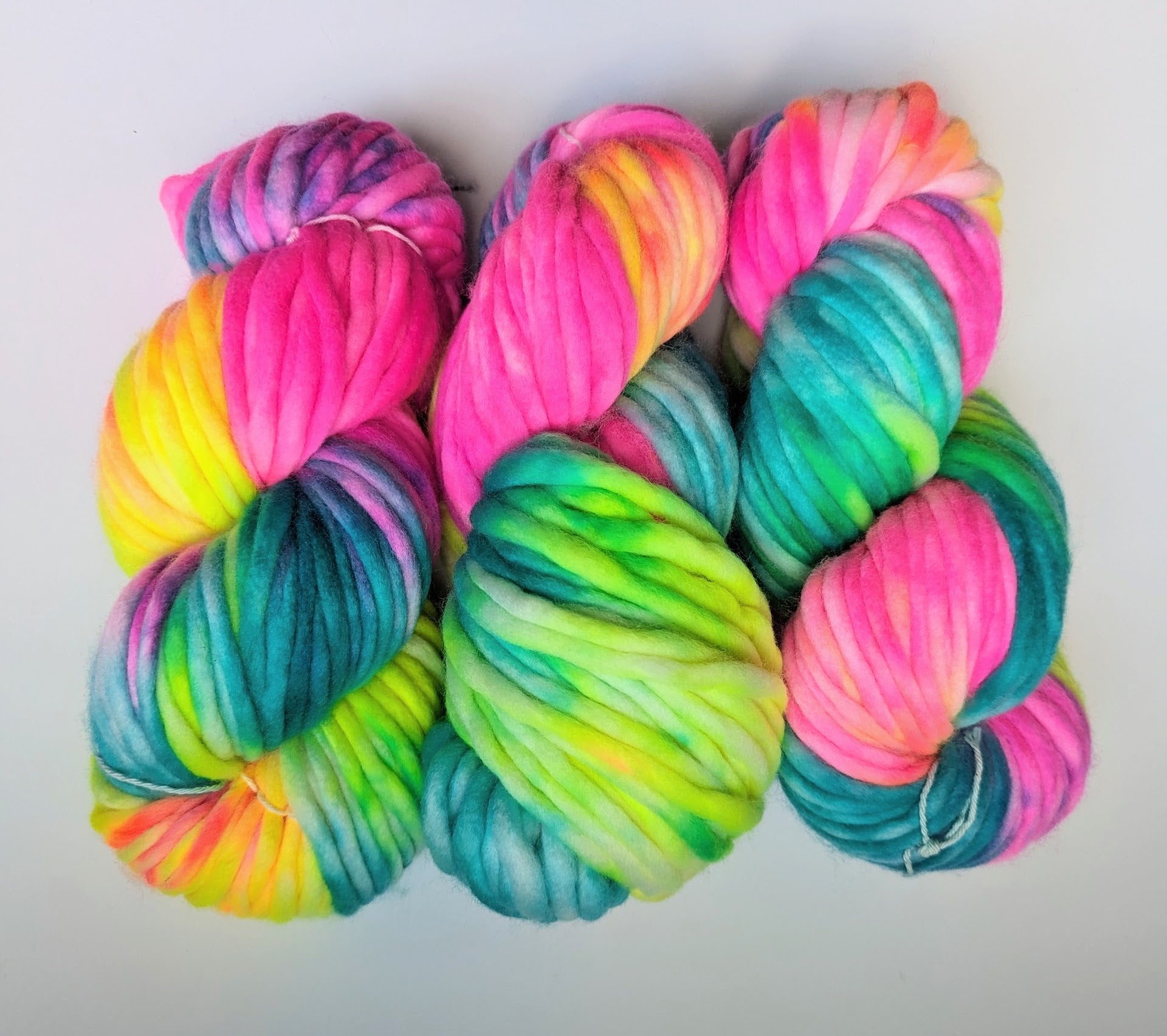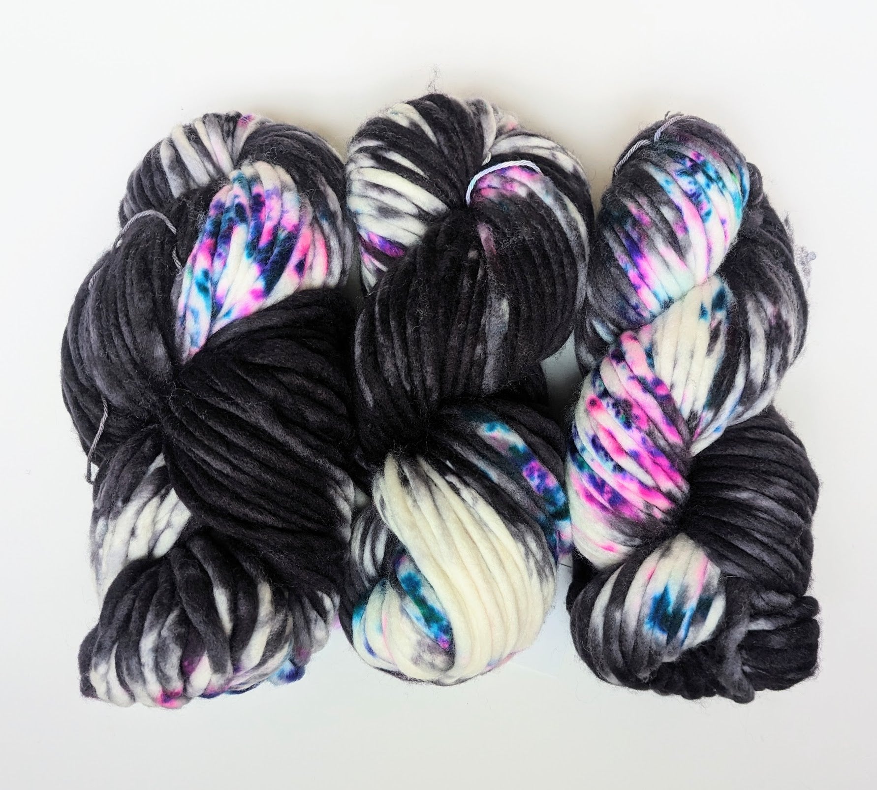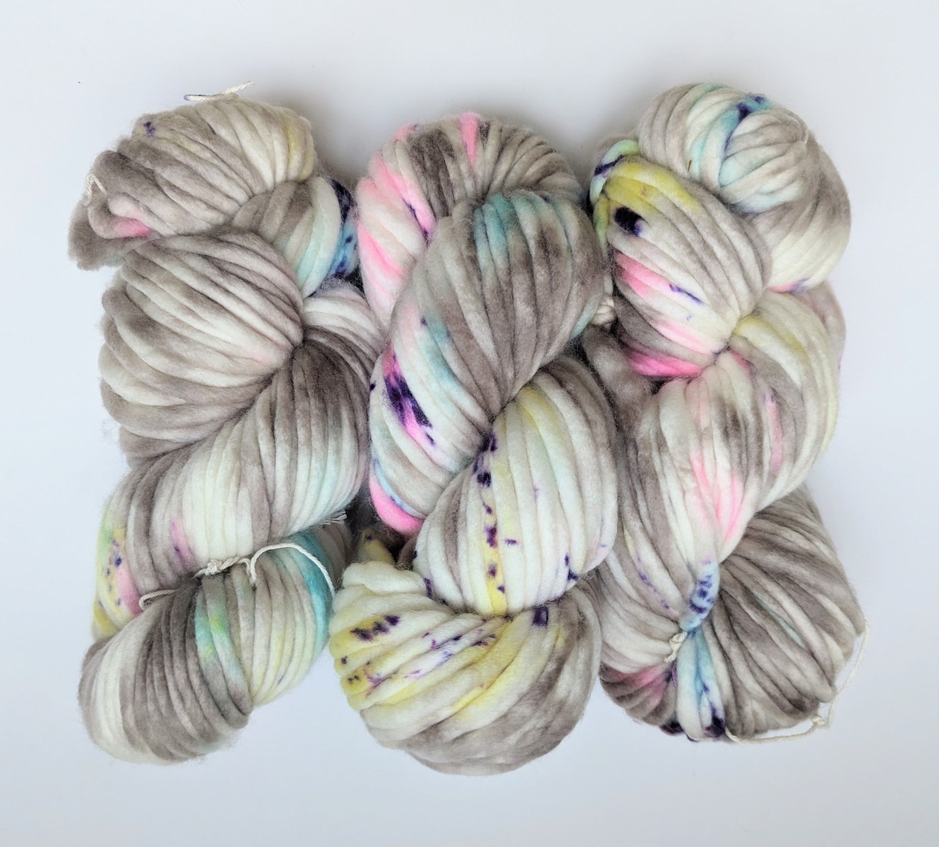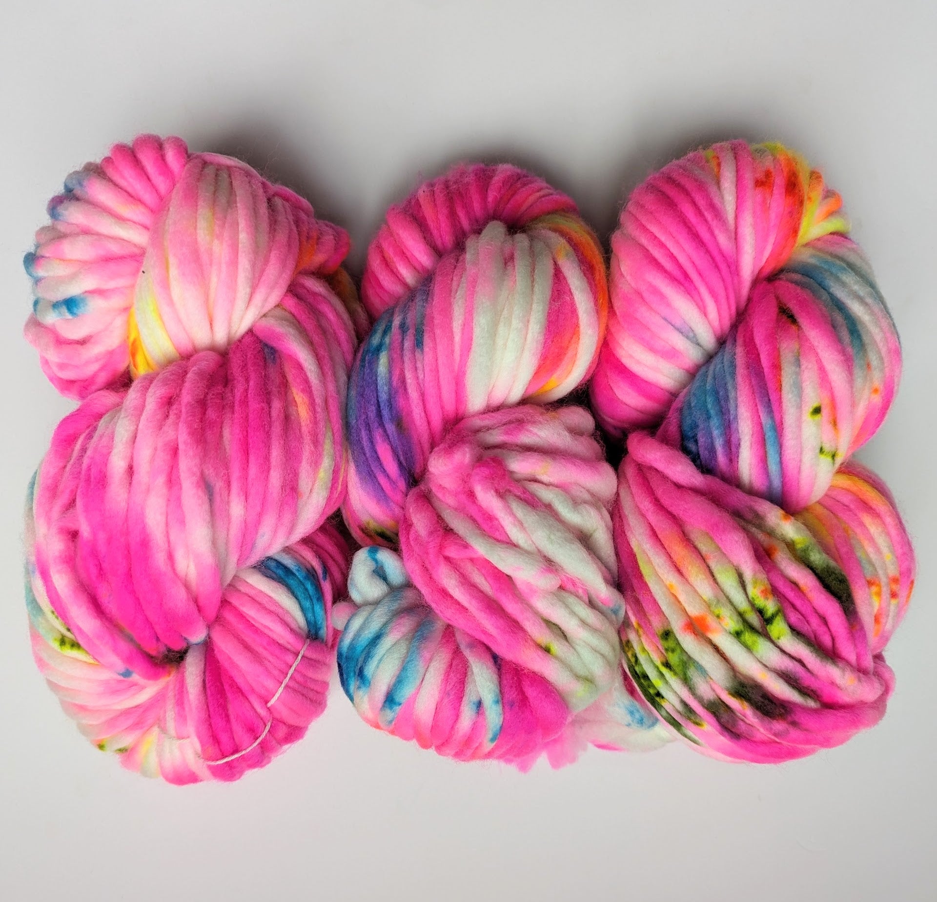 SLAM Fiber Co. Plush is a Super Bulky yarn, hand dyed in Canada by Sam. It's perfect for beanies, scarves, sweaters, and more! This new version of Sam's Super Bulky yarn is even bigger and squishier than before!