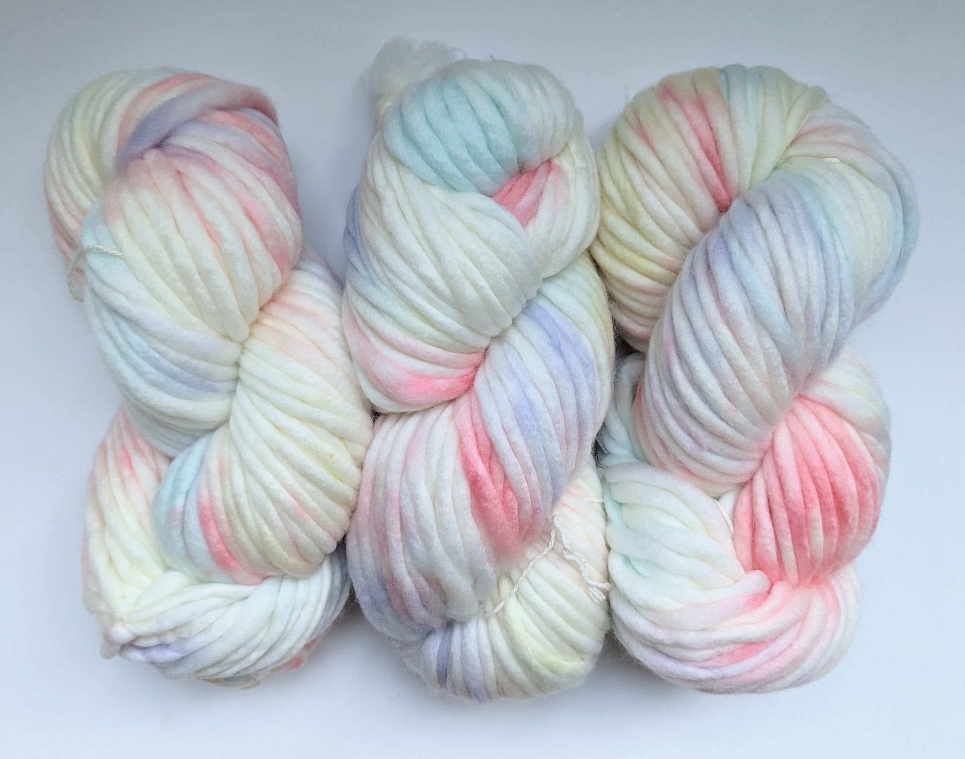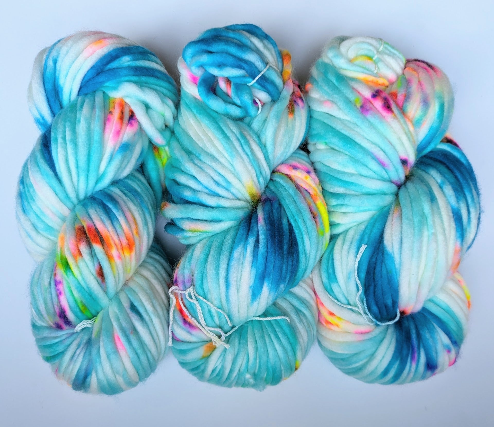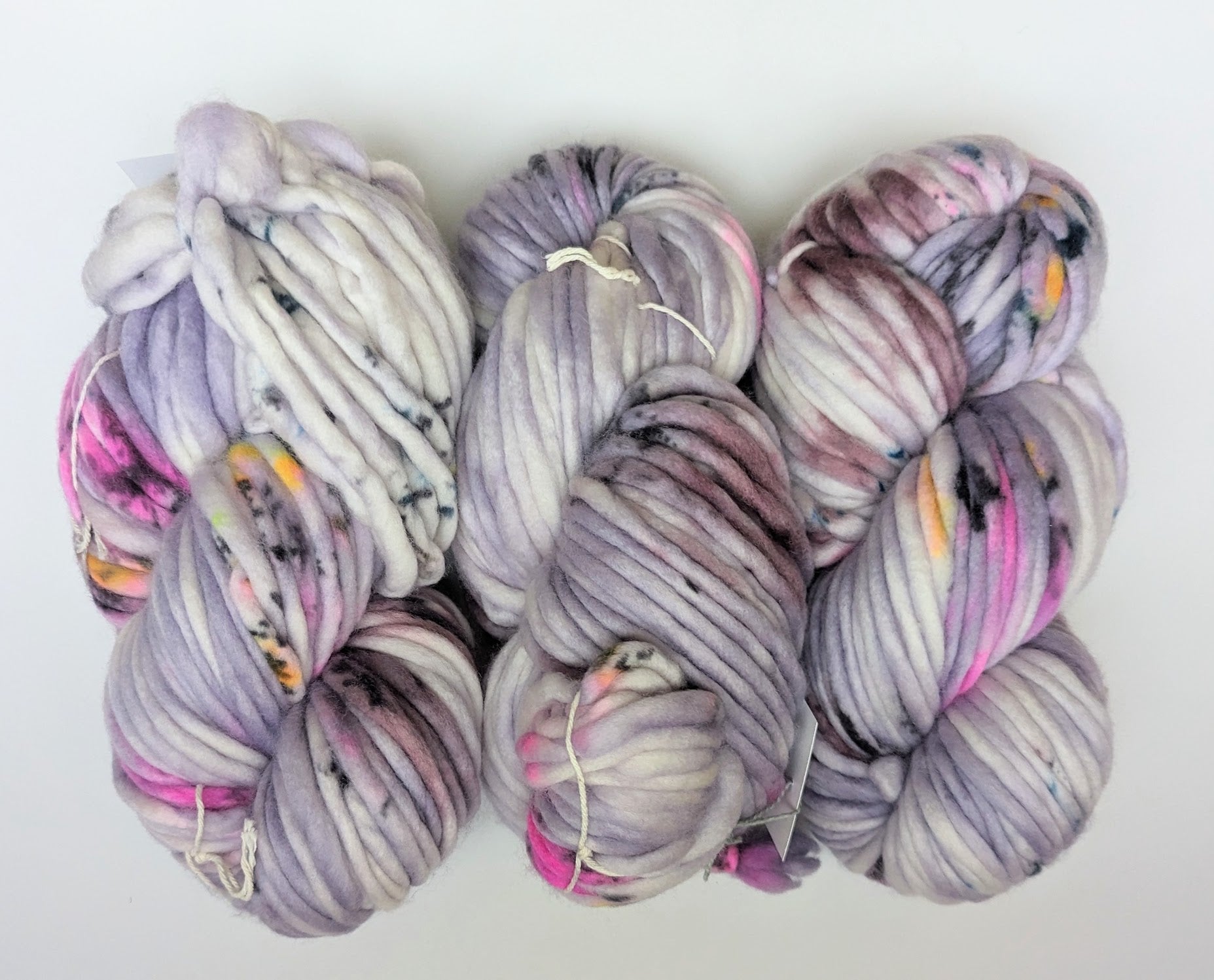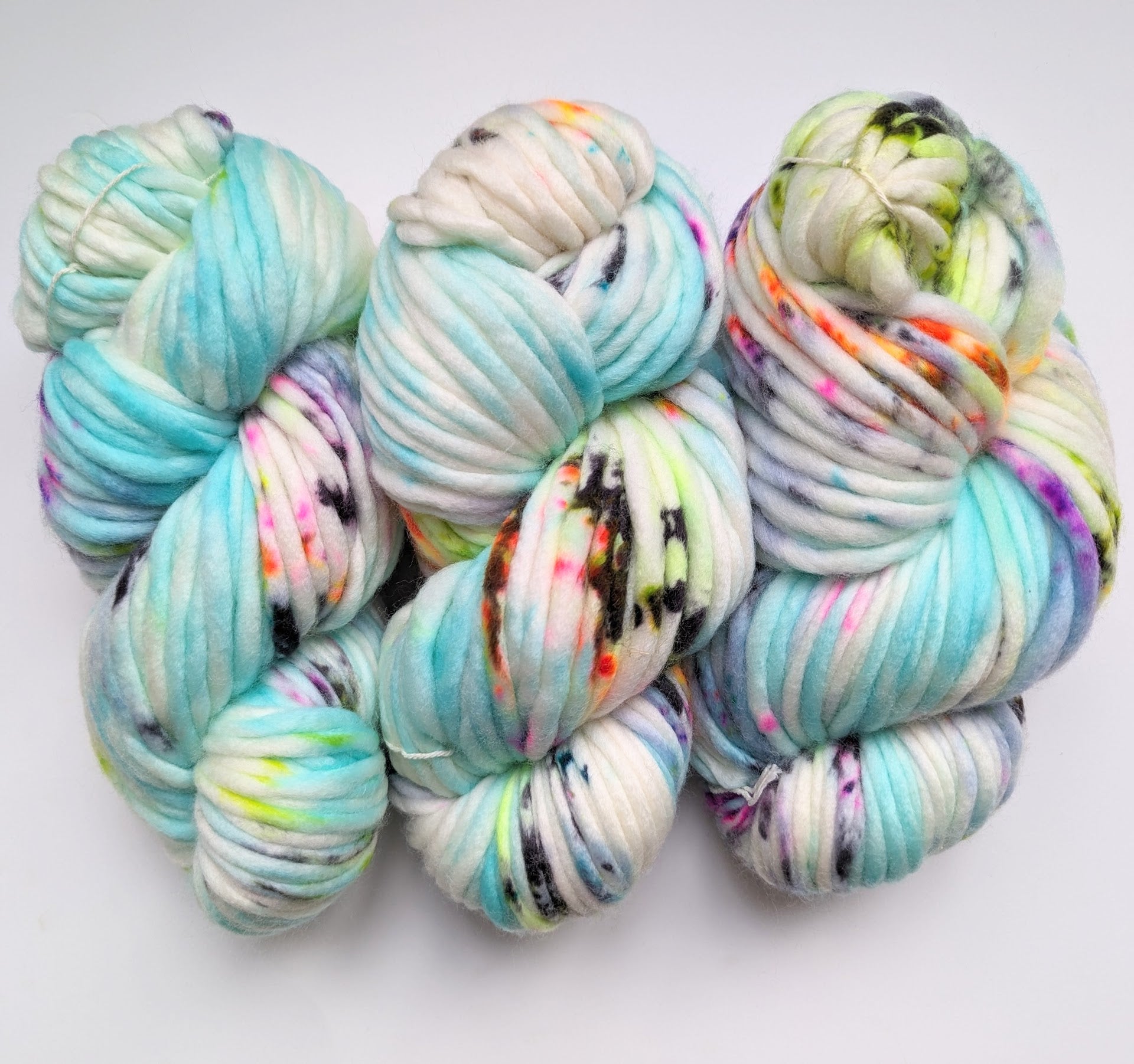 SLAM Fiber Co. Plush is a Super Bulky yarn, hand dyed in Canada by Sam. It's perfect for beanies, scarves, sweaters, and more! This new version of Sam's Super Bulky yarn is even bigger and squishier than before!