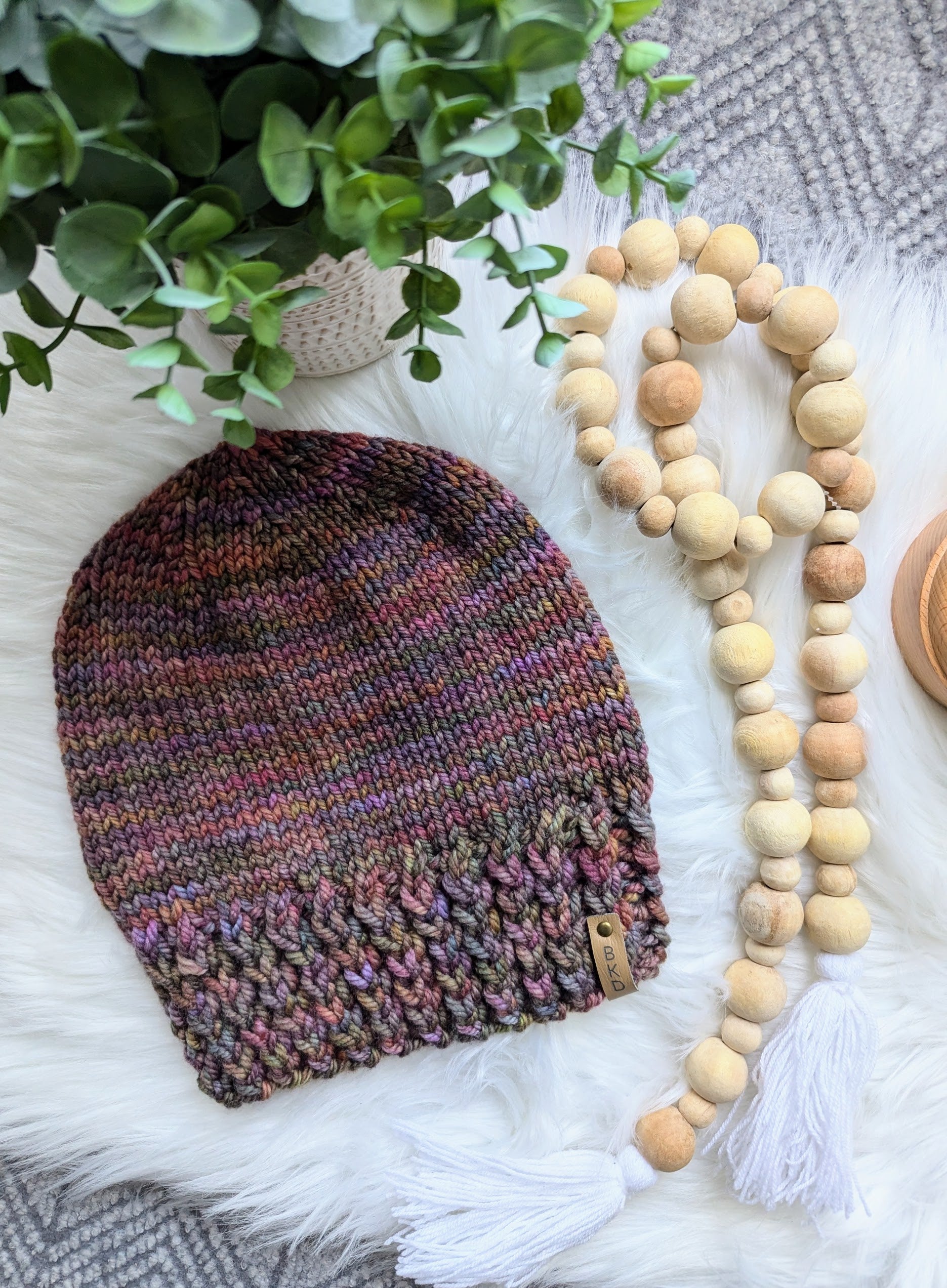 This pattern is knit in the round and uses simple stitches to create this everyday go-to slouchy beanie - with a twist! Special stitches are used to create a beautiful twisted brim effect. Video and written support are provided for the special stitches. The pattern also gives instructions on how to modify the length as desired.